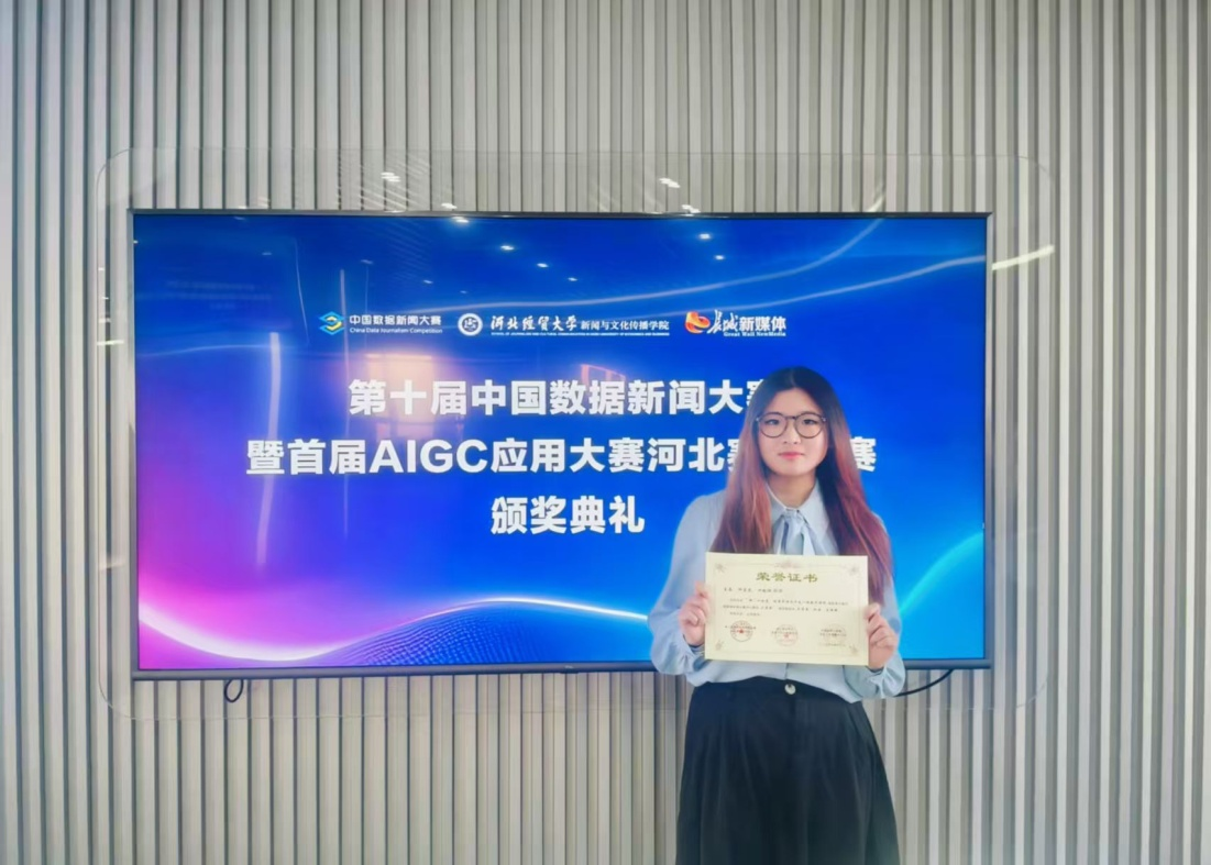 10月28日,第十届中国数据新闻大赛暨首届AIGC应用大赛河北省赛区决赛颁奖仪式在长城新媒体集团隆重举行,我院学子荣获三等奖,来自河北省内高校的师生代表共计100余人参与活动。