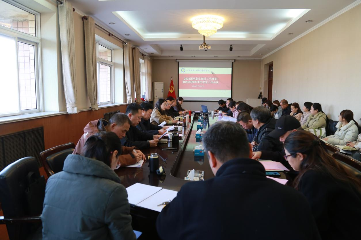 11月27日,我院2025届毕业生就业工作表彰暨2026届毕业生就业工作部署会议在学院五楼会议室顺利召开。学院领导班子成员出席会议,全体中层管理干部、各系就业工作负责人以及2025届、2026届专兼职辅导员参加会议。会议由副院长王鸿喜主持。