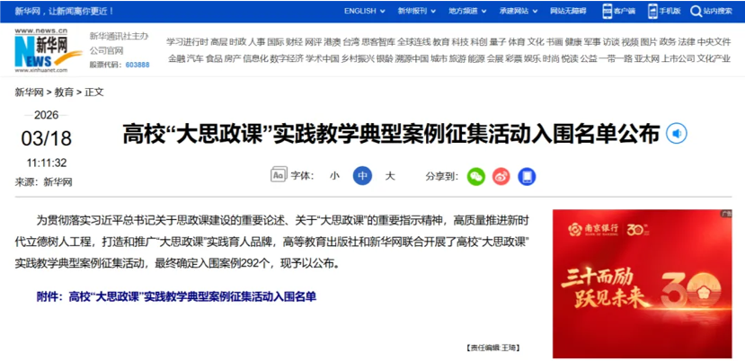 近日,高等教育出版社和新华网联合开展的全国高校“大思政课”实践教学典型案例征集活动结果正式公布,我院申报的“国旗引领 专业赋能——构建‘三学三入’国家安全教育实践教学新模式”案例成功入选全国普通本科教育组名单,这是我院在国家安全教育与思政课实践教学深度融合领域取得的又一重要成果。