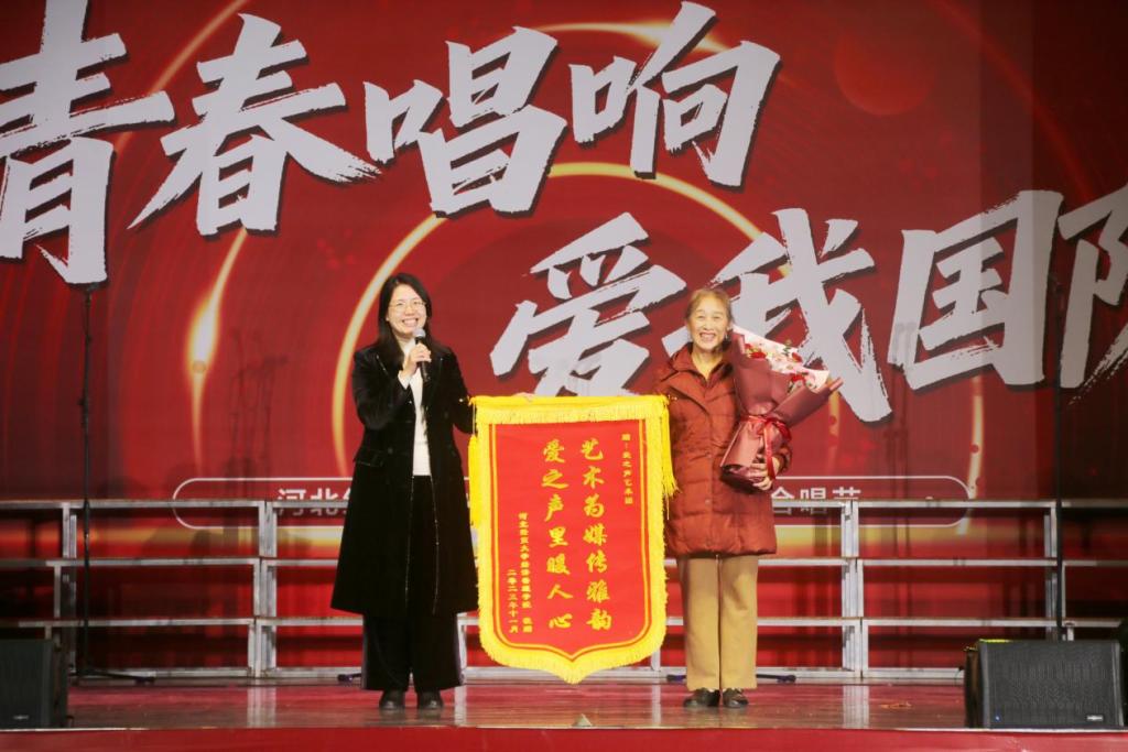 颁奖环节,院领导为各获奖单位颁发了“最佳艺术表现奖”“最具活力风采奖”“最佳舞台创意奖”及“优秀组织奖”。学院党委书记蔡杨向“爱之声”艺术团授予荣誉锦旗,感谢其为校园文化建设和国防教育作出的积极贡献。