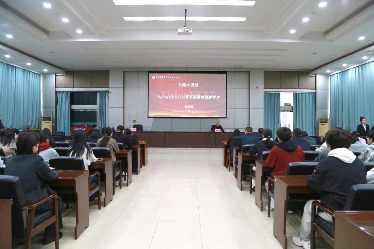 11月5日,图书馆报告厅座无虚席,河北经贸大学校友,国家高层次人才项目获得者,北京交通大学教授魏云超做客我院“名师大讲堂”,为师生带来一场融合视觉推理前沿技术与职业发展的分享。学院领导、各系部及学部负责人和信息系师生300余人齐聚一堂,共同聆听这场学术讲座。讲座由院长李大庆主持。