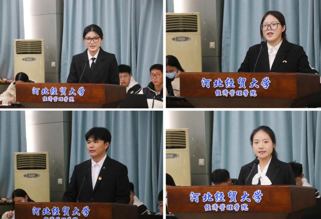 经评委公正评审,商务系智欣茹、杨泽琨,文法系张怡然,管理系王双喆颉、许极、王涵,会计系赵梓君,经济系张佳萌、李帅,信息系孙卓昊十位同学荣获本学年“十佳”优秀大学生称号。
