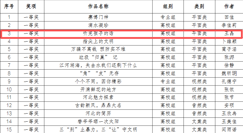 近日,由河北省市场监管局、河北省文明办、河北省委省直工委、河北省教育厅、河北省水利厅、河北省卫生健康委、河北省广播电视局、共青团河北省委共同主办的河北省公益广告大赛获奖作品公示,我院文法系王晶同学一人斩获18个省级奖项,获奖数量和质量皆创历史新高。